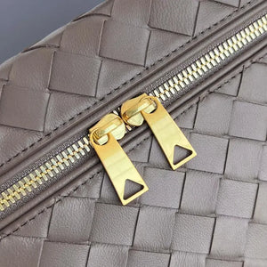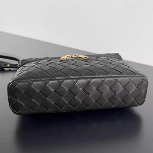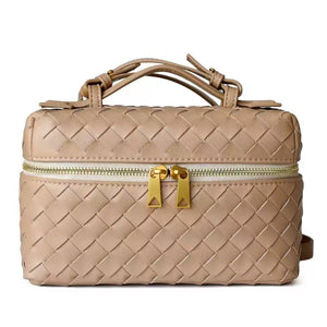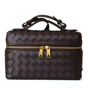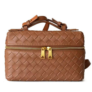 Crafted in supple calfskin with an elegant woven texture, this compact top handle bag brings refined structure and everyday versatility. Its clean silhouette opens to a spacious interior designed to keep essentials organized while maintaining a polished look. Carry it by hand or attach the strap for effortless crossbody styling.