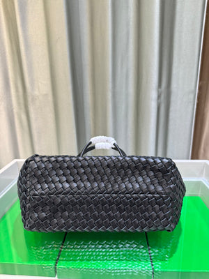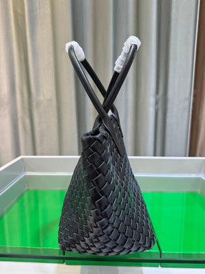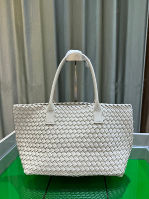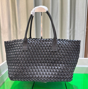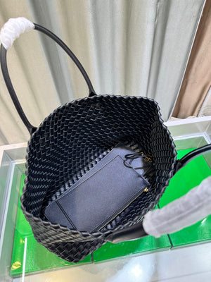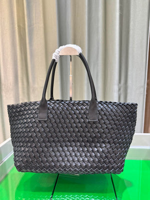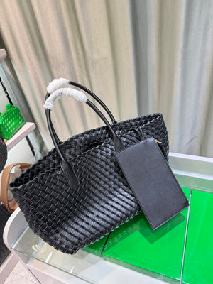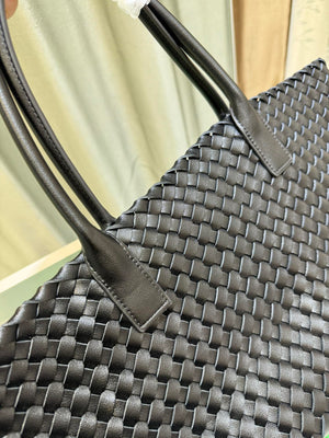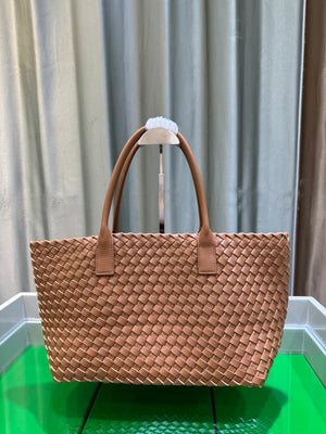Elevate your style with this exquisite woven shopping bag crafted from premium cowhide leather. Measuring 25×43×15 cm, it offers a spacious and durable design perfect for your everyday needs. The bag comes with a detachable leather wallet for added convenience and versatility.