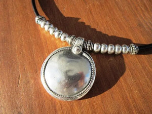 • Material: Genuine leather cord with silver-plated beads and pendant.