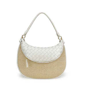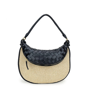 A refined blend of natural texture and timeless elegance. This shoulder bag features a woven straw body paired with a smooth, genuine leather flap and handle—designed for effortless style and everyday function.